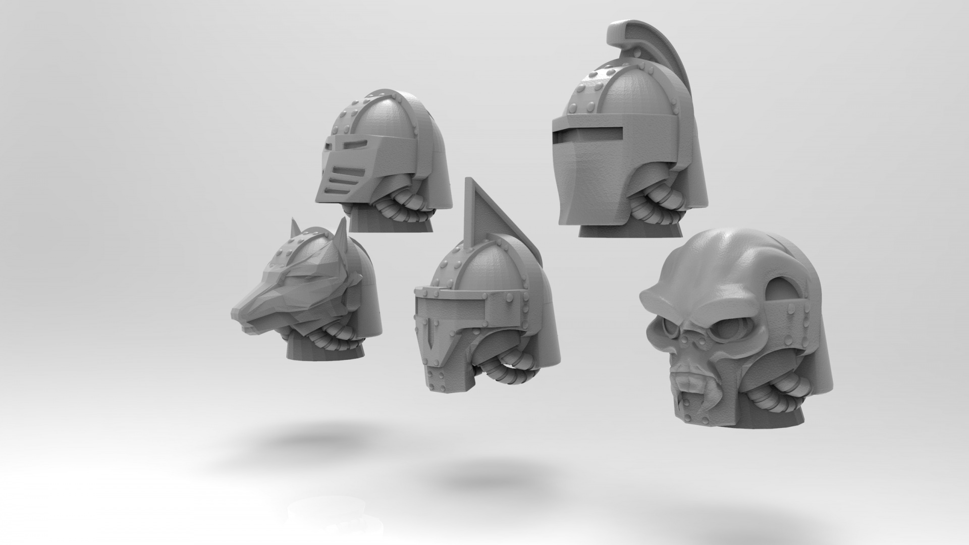 Ein Set von 5 Köpfen im Lunar Auxilia Stil für 28mm Figuren.