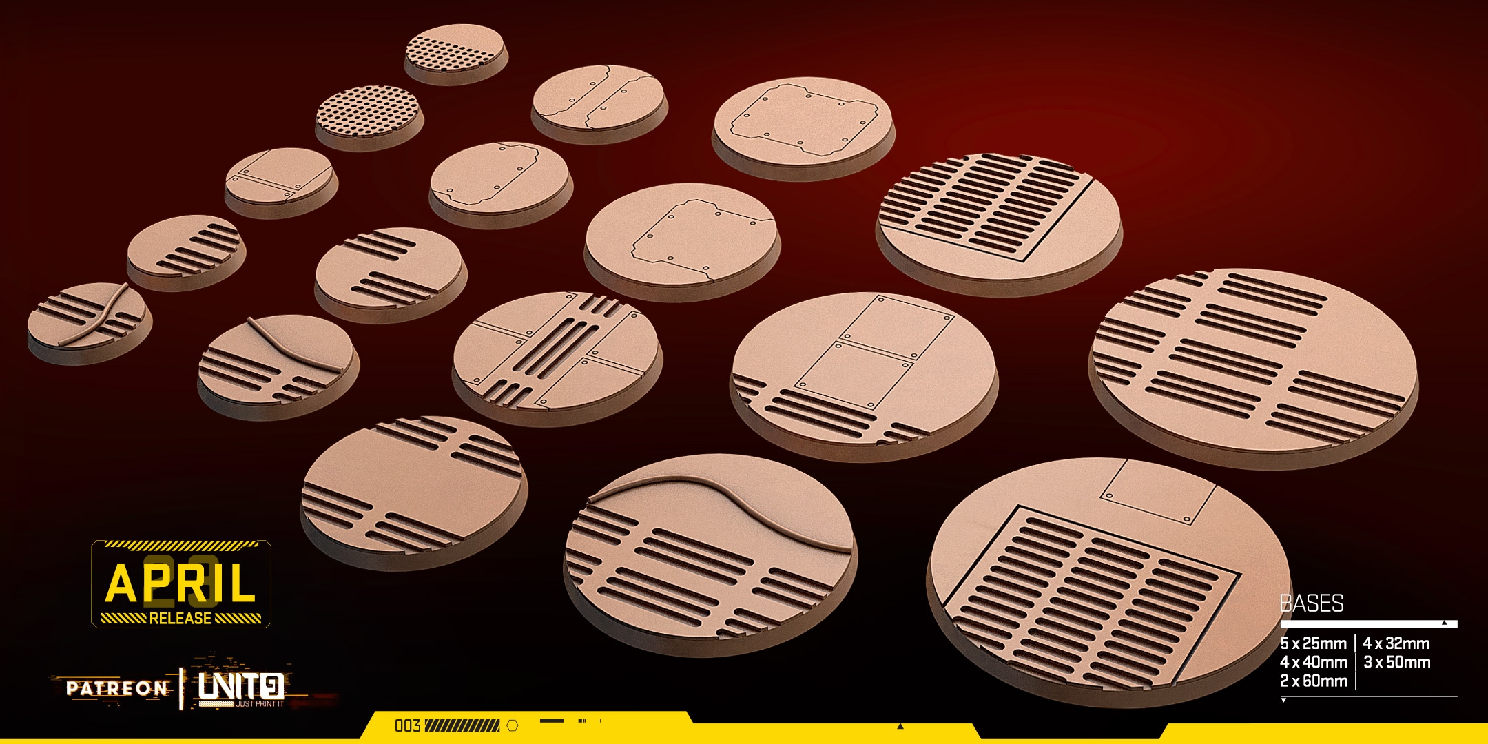 Verschiedene Sets Bases im Gefängnis/Industrial-Stil aus Resin mit Standardbases für Genre Tabletops wie Human Interface Proxy Wars, 41k, One Page Rules und viele mehr.