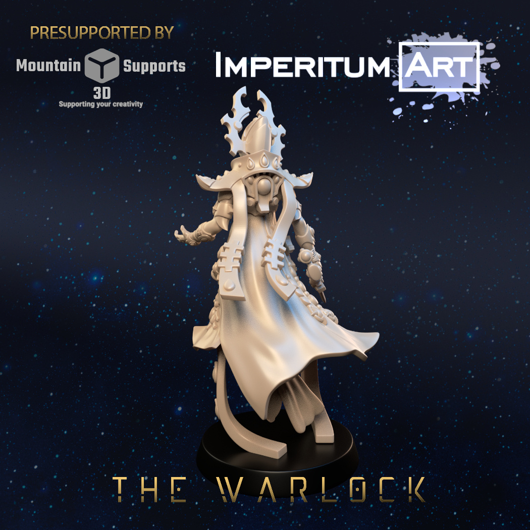 The Warlock Miniatur mit Standardbase spielbar als 41k Warlock.